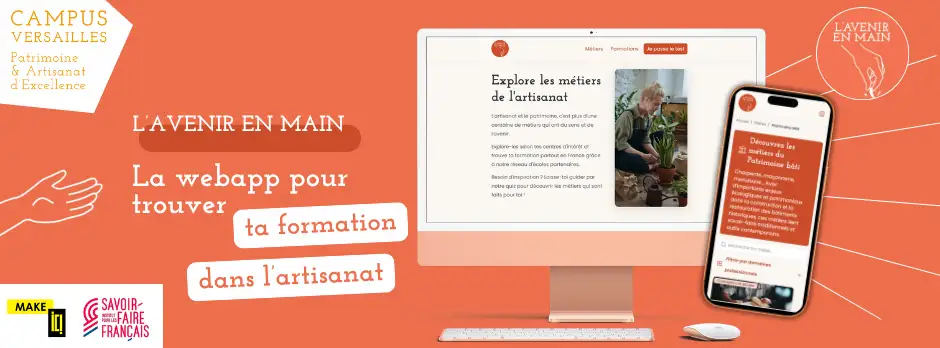 Ámbito del Campus Versalles — partnerUnion compagnonnique — junto con muchos actores involucrados en la transmisión de conocimientos, Avenir en main es parte de una clara voluntad: hacer visibles los oficios, transmitir conocimientos y acompañar las vocaciones de mañana.